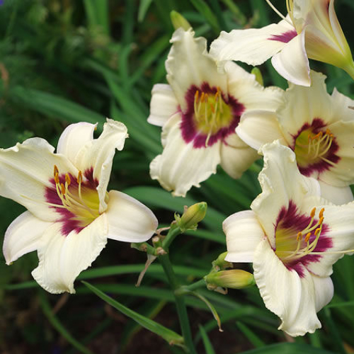 Лилейник Pandora's Box (Пандора Бокс) - это изысканный сорт, который станет украшением любого сада. Его цветки, достигающие 10 см в диаметре, привлекают внимание своим контрастным сочетанием белого и вишневого цветов. Высота взрослого растения составляет около 50 см, что делает его идеальным для создания цветочных композиций и бордюров.
