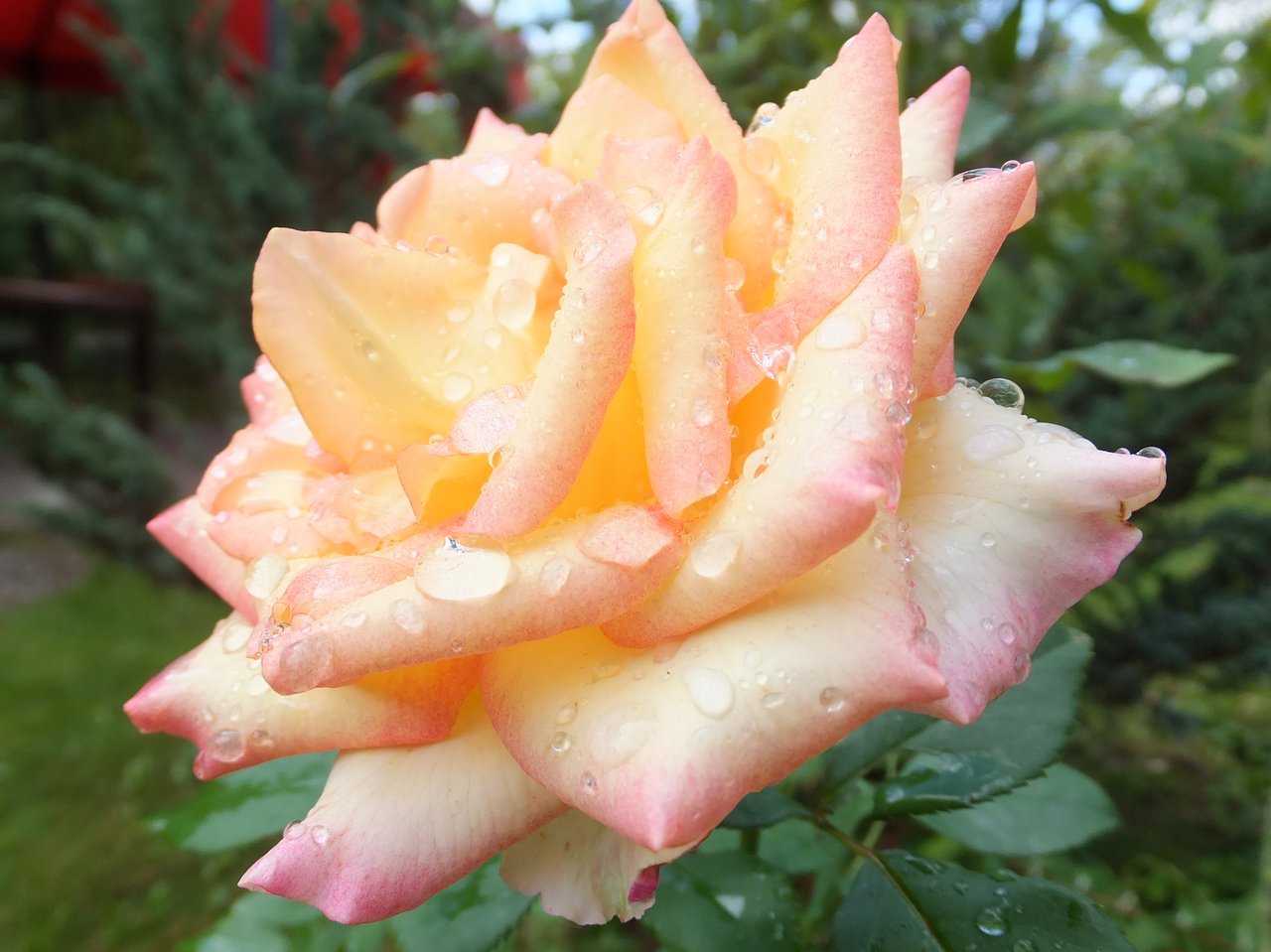 Роза Ambiance (Амбианс) станет ярким украшением вашего сада благодаря своему продолжительному и красочному цветению. Этот сорт завоевал популярность среди опытных садоводов благодаря своему уникальному окрасу. Цветки розы Ambiance могут менять оттенки в зависимости от погоды и климата, но основной цвет остается насыщенно-желтым с нотками персика. Края лепестков имеют красно-малиновые или розовые оттенки, которые слегка отгибаются. Махровый бутон имеет высокую форму, а распустившись, превращается в изящный цветок с мягким приятным ароматом. Диаметр цветка достигает 12 см. Куст высокорослый, высотой около 80-100 см, с прямыми и крепкими стеблями. Листья ярко-зеленые и крупные, что подчеркивает контрастность цветков. Цветы великолепно смотрятся как в срезке, так и на кусту. Сорт розы Ambiance идеально подходит для выгонки, срезки и озеленения, а также прекрасно смотрится в праздничных букетах. Роза хорошо переносит морозы и устойчива к заболеваниям.