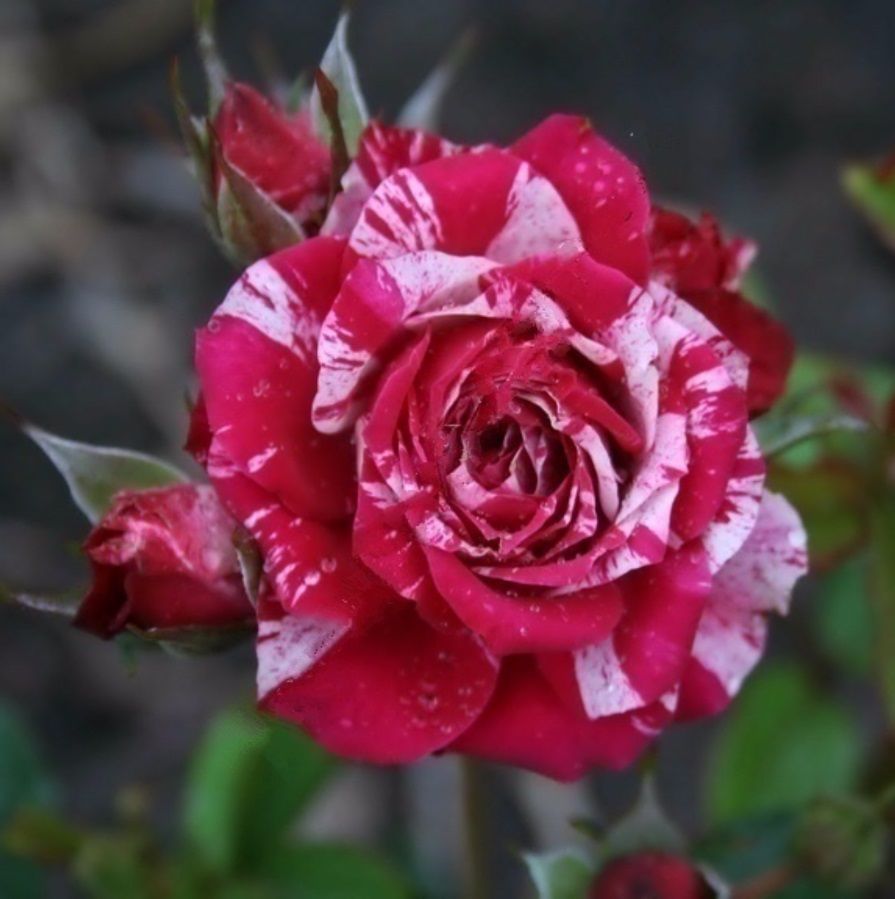 Саженец спрей розы Арроу Фолиес (Arrow Follies) представляет собой уникальное декоративное растение с ярким и обильным цветением. Кусты высотой до 70 см покрыты махровыми цветками, окрашенными в красный цвет с пурпурным оттенком и украшенными белыми и кремовыми полосками. Этот сорт идеально подходит для одиночных и групповых посадок, а также для выращивания в контейнерах.