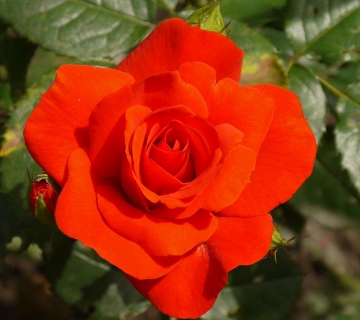 Роза флорибунда Чин-Чин (Chin Chin) отличается крупными, махровыми цветками с яркими ало-оранжевыми лепестками. В полном раскрытии цветки демонстрируют тычинки и белые полоски у основания лепестков. Цветки собраны в кисти по 3-10 штук и со временем выгорают до красного оттенка. Листва у растения темно-зеленая, а цветение повторяется обильно. Высота куста составляет 50-70 см.